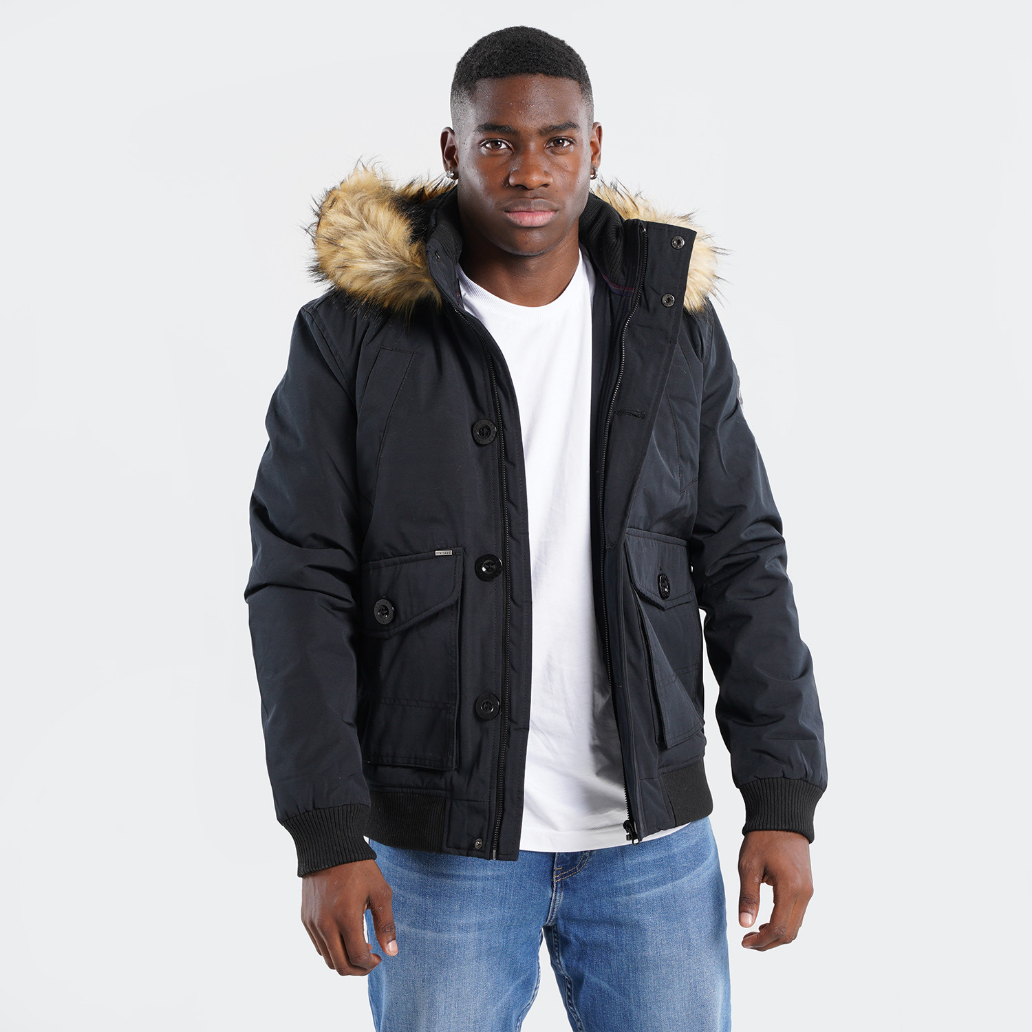 Το ιδανικό μπουφάν για τις καθημερινές σου βόλτες στη πόλη. Διαθέτει αποσπώμενη κουκούλα για να βάζεις ή βγάζεις όποτε εσύ θες ή και αναλόγως τον καιρό. Οι τσέπες του κρατάνε τα χέρια σου ζεστά αλλά και τα μικροαντικείμενα που θες να έχεις μαζί σου. Πληροφορίες • Στενή εφαρμογή • Αποσπώμενη κουκούλα • Τσέπες χεριών με κουμπί • Τσέπη στο στήθος με φερμουάρ • 2 εσωτερικές τσέπες • Ριμπ ελαστικό τελείωμα και μανσέτες Extra Λεπτομέρειες • Χρώμα : Μαύρο