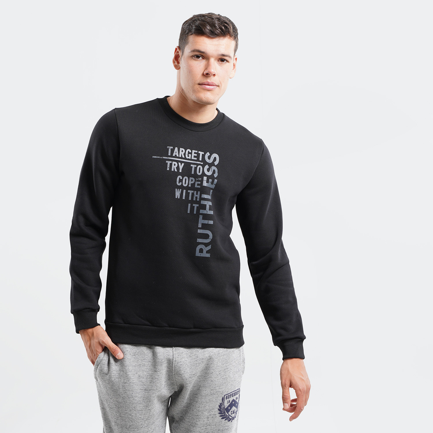 Συνδύασε αυτό το ανδρικό φούτερ από την Target με την αγαπημένη σου φόρμα ή ακόμα και το denim σου, και νιώσε την άνεση που σου αξίζει καθημερινά! Είναι κατασκευασμένο από εξαιρετικά απαλό ύφασμα υψηλής ποιότητας για να σου προσφέρει μια μοναδική αίσθηση ζεστασιάς σε κάθε στιγμή της μέρας σου. Πληροφορίες • Σύνθεση: 100% βαμβάκι • Κανονική εφαρμογή • Στρογγυλή λαιμόκοψη • Ριμπ μανσέτες και τελείωμα • Απαλή αίσθηση Extra Λεπτομέρειες • Target Ruthless design στο στήθος • Χρώμα: Μαύρο