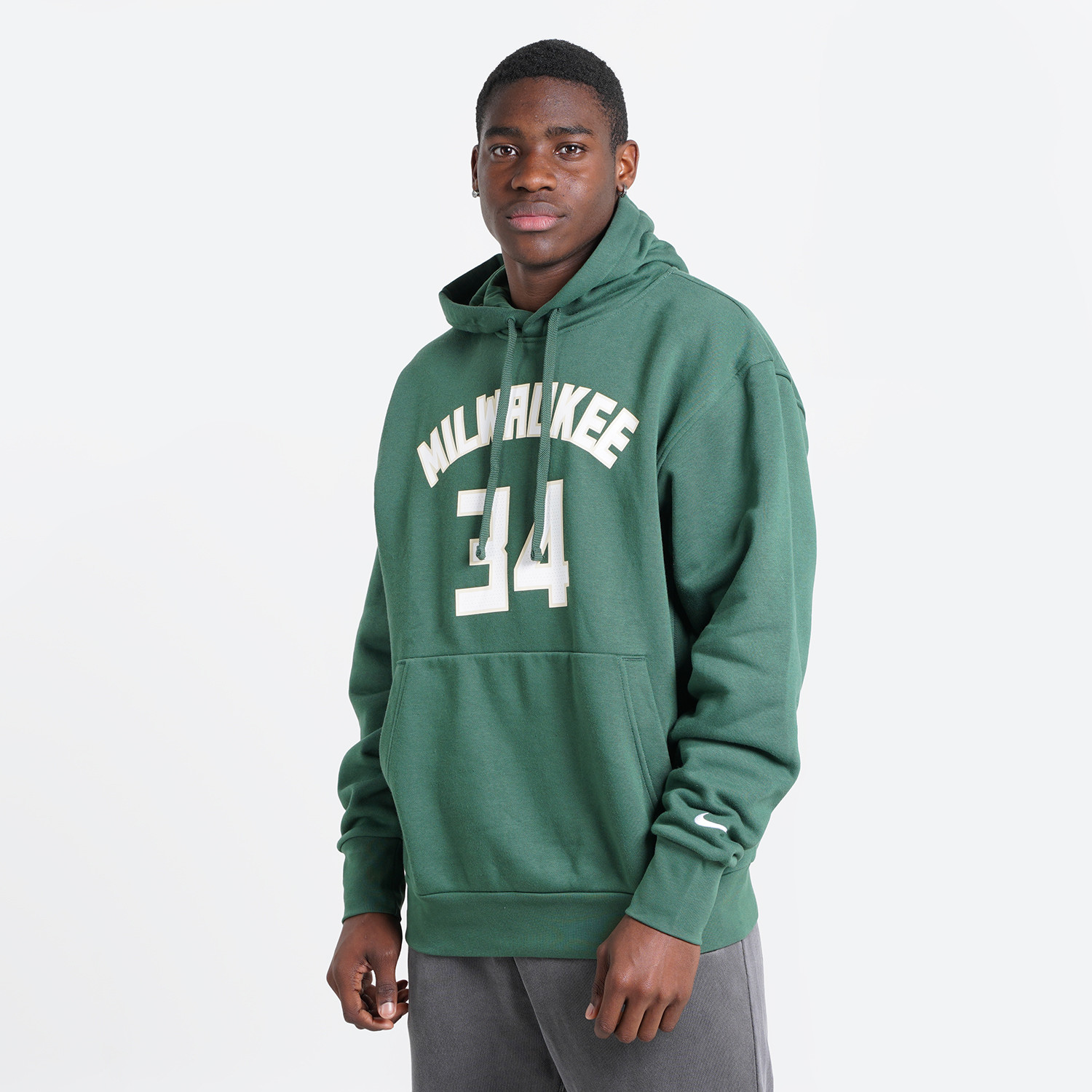 Συνδυάστε τη φανέλα της αγαπημένης σου ομάδας με τη ζεστή άνεση μια μπλούζας φούτερ των Milwaukee Bucks. Φτιαγμένη από βουρτσισμένο φλις διαθέτει το όνομα και τον αριθμό του αγαπημένου σου παίκτη. Πληροφορίες • Σύνθεση: 80% βαμβάκι / 20% πολυεστέρας • Χαλαρή εφαρμογή • Μπροστινή τσέπη • Ριμπ τελείωμα και μανσέτες • Premium fleece ύφασμα • Κουκούλα με κορδόνι για προσαρμογή Extra Λεπτομέρειες • Κεντημένο λογότυπο Swoosh • Τυπωμένα το όνομα τις ομάδας και του παίκτη • Χρώμα: Πράσινο