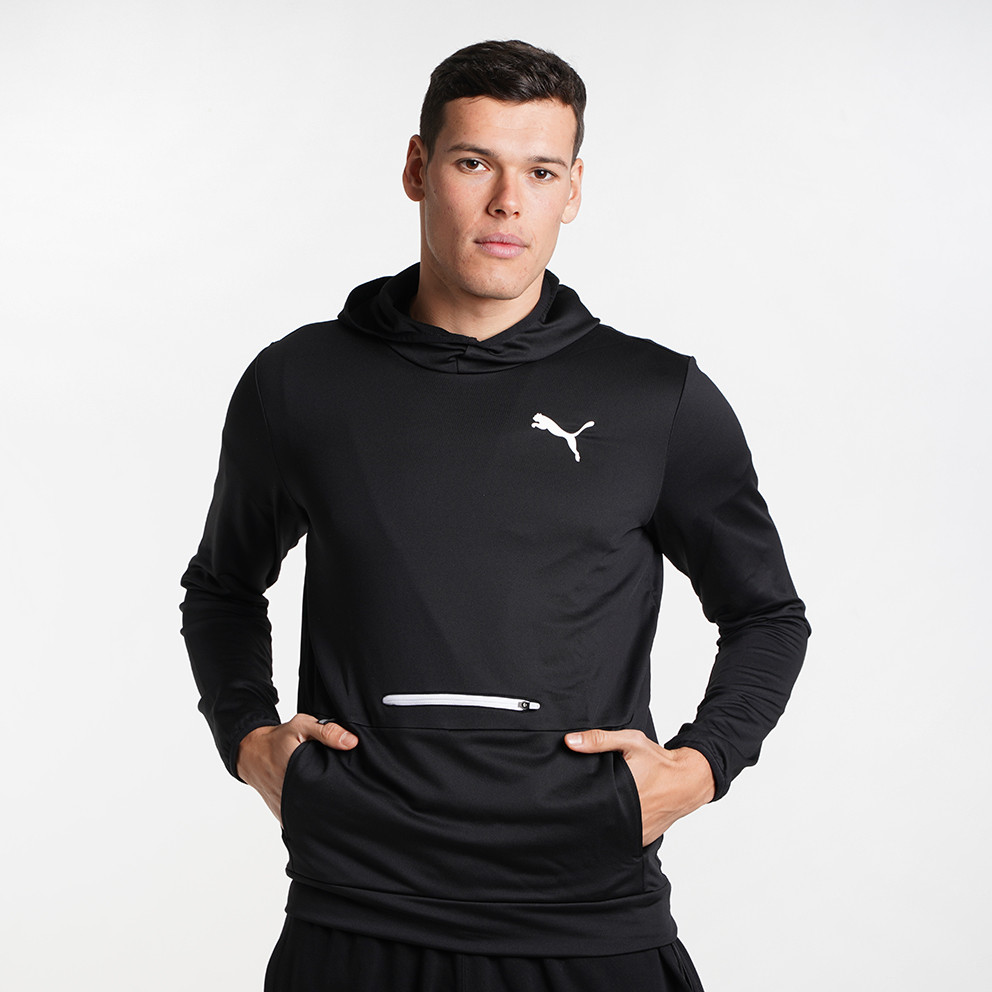 Αυτή η μπλούζα με κουκούλα είναι ιδανική για κάθε σου δραστηριότητα. Είναι κατασκευασμένη από μαλακά ύφασμα με τεχνολογία dryCELL που απορροφάει τον ιδρώτα από το δέρμα και σου προσφέρει την απόλυτη άνεση καθ’ όλη τη διάρκεια της ημέρας. Πληροφορίες • Σύνθεση: 95% πολυεστέρας / 5% ελαστάν • Στενή εφαρμογή • Ελαστική μέση • Απαλή αίσθηση • Τσέπες τύπου kangoo Extra Πληροφορίες • Puma τύπωμα στο μπροστινό μέρος • Χρώμα: Μαύρο