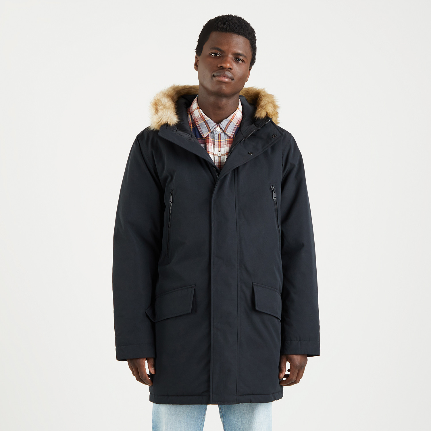 Ένα κομψό μπουφάν parka, ιδανικό για τις πιο ανατρεπτικές καιρικές συνθήκες! Είναι σχεδιασμένο με τσέπες στο μπροστινό μέρος και δύο με φερμουάρ ενώ είναι κατασκευασμένο από αδιάβροχο υλικό. Αποτελείται από κουκούλα στο πίσω μέρος με γούνα . Συνδυάστε το με τις αγαπημένες σας επιλογές στην γκαρνταρόμπα σας για την απόλυτη χειμερινή εμφάνιση. Πληροφορίες • Σύνθεση: 80% βαμβάκι / 20% πολυεστέρας • Κανονική εφαρμογή • Κλείσιμο με κουμπιά & φερμουάρι • Μπροστινές τσέπες • Κουκούλα στο πίσω μέρος με γούνα Extra Λεπτομέρειες • Levi’s σχέδιο • Το μοντέλο είναι 180 cm και φοράει Μ • Χρώμα: Μαύρο