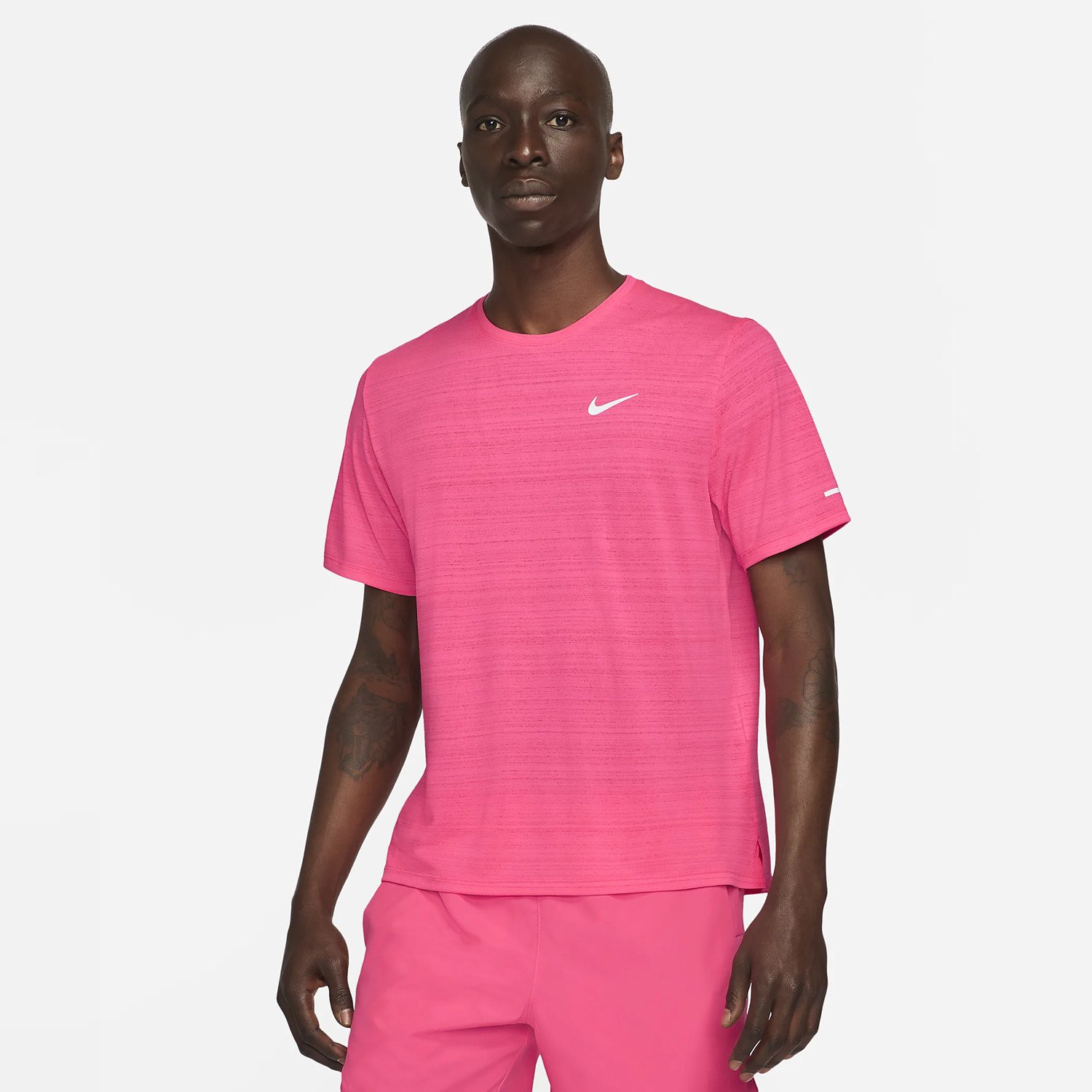 Κινήσου με άνεση και στυλ. Εάν δεν μπορείς να αποχωριστείς την γυμναστική, τότε αυτό το Nike Dri-FIT Miler μπλουζάκι είναι ιδανικό για σένα. Το ύφασμα από το οποίο είναι κατασκευασμένο σε συνδυασμό με την Dri-FIT τεχνολογία που διαθέτει επιτρέπουν την βέλτιστη διαπνοή του δέρματος για να παραμένεις στεγνός και άνετος καθ’ όλη τη διάρκεια της προπόνησης σου. Πληροφορίες • Σύνθεση: 100% πολυεστέρας • Κανονική εφαρμογή • Dri-FIT τεχνολογία που απομακρύνει τον ιδρώτα • Τμήματα πλέγματος στο πίσω μέρος για βέλτιστη διαπνοή του δέρματος • Στρογγυλή λαιμόκοψη • Μακρύ μήκος για πλήρη κάλυψη Extra Λεπτομέρειες • Nike τύπωμα στο μπροστινό μέρος • Ανακλαστικές λεπτομέρειες στο μπροστινό και το πίσω μέρος • Χρώμα: Ροζ