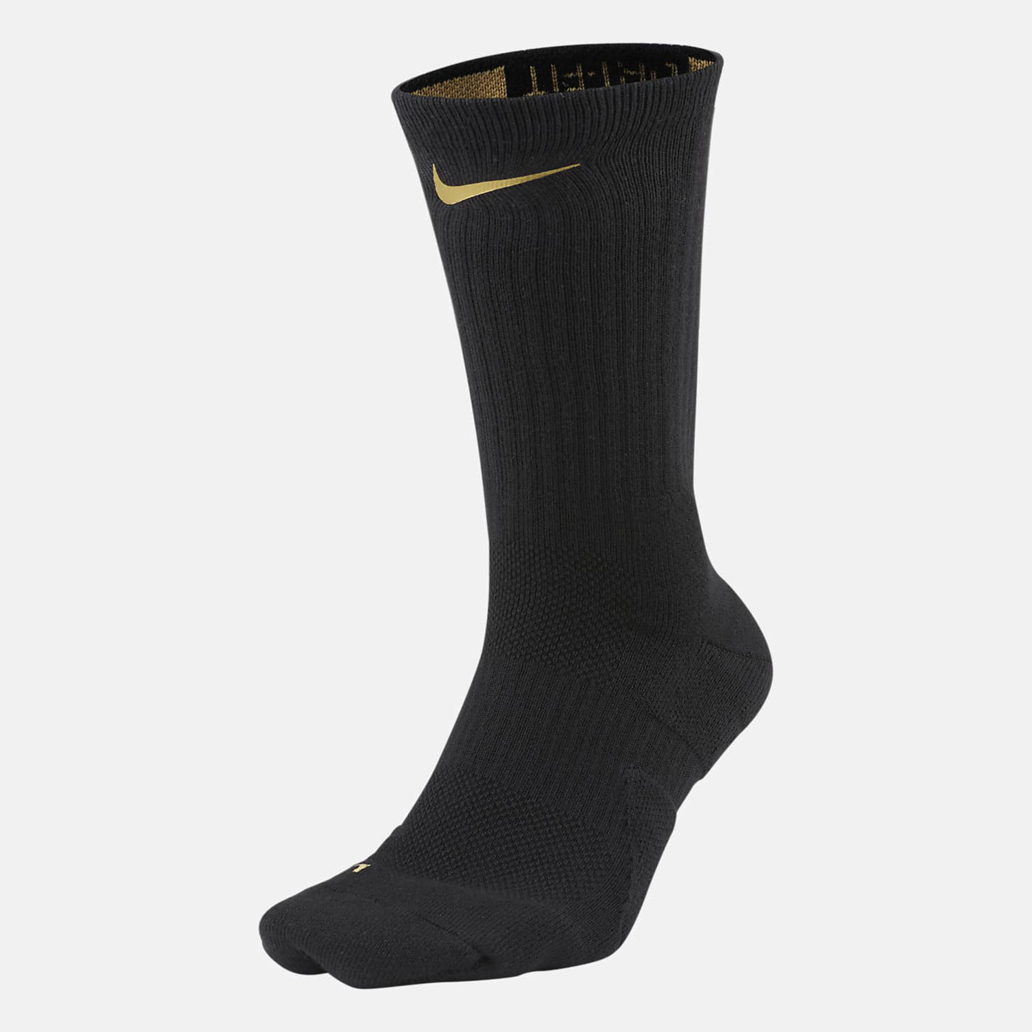 Οι Καλύτερες Επιδόσεις Στο Παιχνίδι Δώσε το στίγμα σου με τις κάλτσες Nike Elite Crew, την απόλυτη επιλογή για άνεση, κυκλοφορία του αέρα και στήριξη. Διαθέτουν πλέξη από νήματα κορυφαίας ποιότητας με τεχνολογία απομάκρυνσης του ιδρώτα για στεγνή αίσθηση. Οι κάλτσες εξασφαλίζουν αντικραδασμική προστασία στα κατάλληλα σημεία, ενώ διαθέτουν λωρίδα στήριξης γύρω από την καμάρα.Τα Χαρακτηριστικά της • Σύνθεση: 61% πολυέστερας / 20% νάιλον / 17% βαμβάκι / 2% σπάντεξ • Τα νήματα κορυφαίας ποιότητας με τεχνολογία απομάκρυνσης του ιδρώτα έχουν απαλή υφή και προσφέρουν στεγνή και άνετη αίσθηση στα πόδια • Η αντικραδασμική προστασία στα κατάλληλα σημεία κάτω από το πέλμα συμβάλλει στην απορρόφηση των προσκρούσεων • Η λωρίδα στήριξης της καμάρας αγκαλιάζει το πόδι και προσφέρει σφιχτή αίσθηση στήριξηςExtra Πληροφορίες • Πλύσιμο στο πλυντήριο • Χρώμα: Μαύρο /Χρυσό