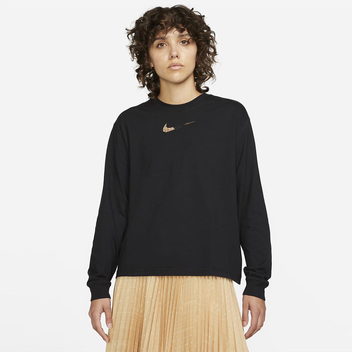 Το μακρυμάνικο T-Shirt Nike Sportswear έχει φαρδιά, χαλαρή εφαρμογή σε τετράγωνη γραμμή, για καθημερινό στιλ και άνετη αίσθηση. Το βαμβακερό ύφασμα ζέρσεϊ μεσαίου βάρους περιλαμβάνει διάφορες υφές στο λογότυπο Swoosh. Πληροφορίες • Σύνθεση: 100% βαμβάκι • Ριχτή εφαρμογή για άνετη αίσθηση • Στρογγυλή λαιμόκοψη • Ύφανση ριμπ στη λαιμόκοψη, τα μανίκια και το τελείωμα • Βαμβακερό ύφασμα μεσαίου βάρους με απαλή και ελαφρώς ανάγλυφη υφή Extra Λεπτομέρειες • Το μοντέλο είναι 174 εκ και φοράει S • Λογότυπο Swoosh με animal print • Χρώμα: Μαύρο Φροντίδα • Πλύσιμο στο πλυντήριο