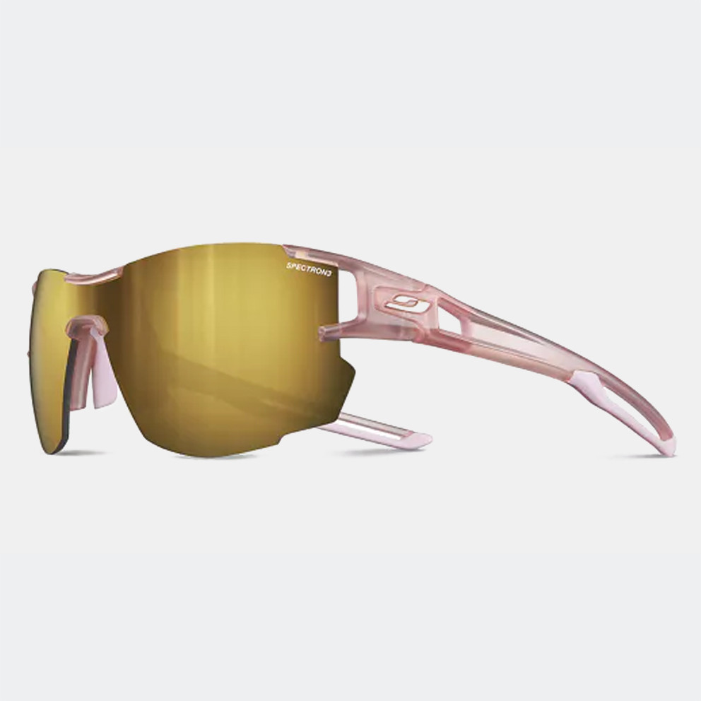 Αυτά τα γυαλιά ηλίου είναι ελαφριά και ειδικά σχεδιασμένα για γυναίκες και δρομείς με μικρότερο πρόσωπο. Προσφέρουν το άψογο επίπεδο στήριξης και διαπνοή, με φακό χωρίς πλαίσιο για ακόμα περισσότερη ανάλαφρη αίσθηση και τρομερή αίσθηση ελευθερίας. Οι φακοί είναι Photochromic Reactiv, το AEROLITE έχει σχεδιαστεί για να είναι κατάλληλοι για όλες τις συνθήκες. Τεχνικά Χαρακτηριστικά • Ύψος φακού (mm) : 45 • Απόσταση γέφυρας (mm) : 14 • Μήκος κρόταφου (mm) : 131 • Βάση: 6 • Μέγεθος φακού (mm) : 126 • Βάρος: 22 γρ Extra Λεπτομέρειες • Grip Tech Temples : Αποκλειστικό μαλακό υλικό στους κροτάφους που δεν κολλάει στα μαλλιά, για τέλειο κράτημα και άνεση • Σύστημα Air Link Temple: Αυτό το ελαστομερές ένθετο που τοποθετείται στο άκρο του κροτάφου κάνει τα γυαλιά ελαφρύτερα και πιο άνετα • Πλήρης εξαερισμός: Δομή γυαλιών ηλίου με υψηλό αερισμό που επιτρέπει την πλήρη κυκλοφορία του αέρα για την αποφυγή ομίχλης • 3D Nose Fit: Τα ειδικά επιθέματα μύτης ρυθμίζονται προς κάθε κατεύθυνση, έτσι ώστε τα γυαλιά να ταιριάζουν σε κάθε τύπο σχήματος μύτης και να εξασφαλίζουν ασυναγώνιστο κράτημα σε όλες τις συνθήκες • Πανοραμική όψη: Ευρεία επιφάνεια φακού για μέγιστο οπτικό πεδίο • Προστασία UV • Βελτιώνει το φιλτράρισμα του φωτός εφαρμόζοντας ένα εφέ καθρέφτη στο φακό • Branding Julbo • Χρώμα: Χρυσό