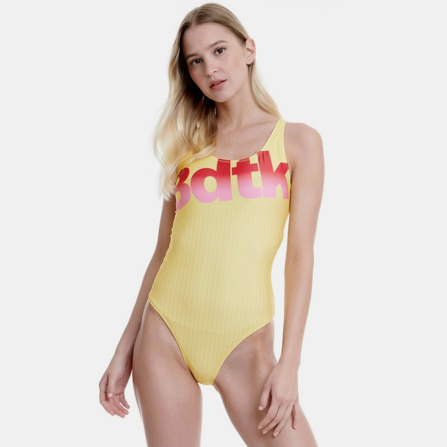 Το Απόλυτο Καλοκαιρινό Ολόσωμο Μαγιό Αυτό το μαγιό από την BodyTalk ήρθε για να σε συνοδεύσει στις καλοκαιρινές σου στιγμές. Νιώσε την άνεση και το στυλ με το μοναδικό design που διαθέτει. Είναι κατασκευασμένο από συνθετικό ύφασμα με ανοιχτή πλάτη και ζωηρά χρώματα.Τα Χαρακτηριστικά Του • Σύνθεση: 80% πολυεστέρα / 20% ελαστάνη • Κανονική εφαρμογή • Διαθέτει άνοιγμα στην πλάτηExtra Πληροφορίες • Διακοσμείται με λογότυπο Βdtk στο στήθος • Το μοντέλο φοράει μέγεθος Μ • Χρώμα: Κίτρινο