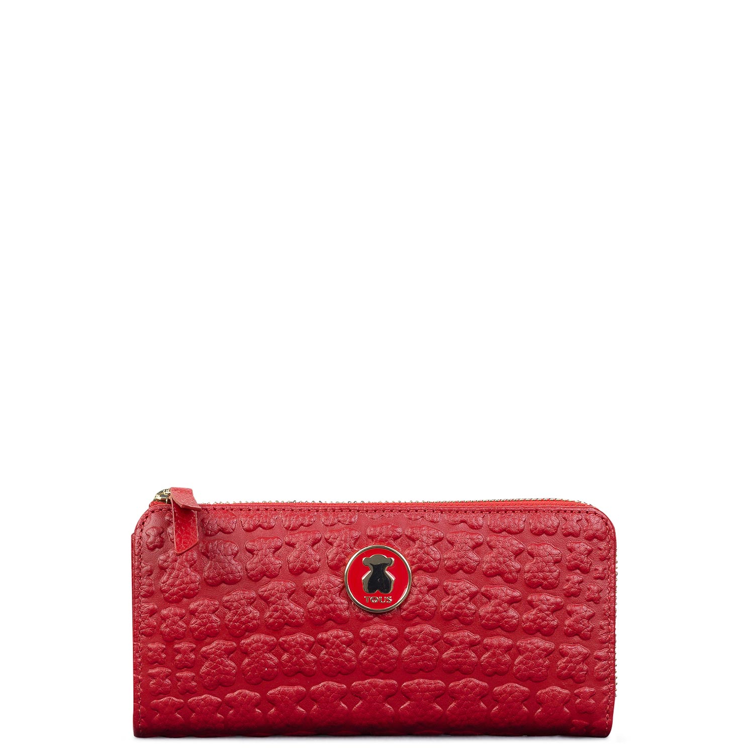 Πορτοφόλι TOUS Sherton από δέρμα σε κόκκινο χρώμα με ανάγλυφο αρκουδάκι σε κροκό όψη. Διαθέτει 8 θήκες για κάρτες, 1 θήκη με φερμουάρ καθώς και 4 ακόμη για διάφορα αντικείμενα. Έχει διαστάσεις: 10 x 19 x 2 cm.