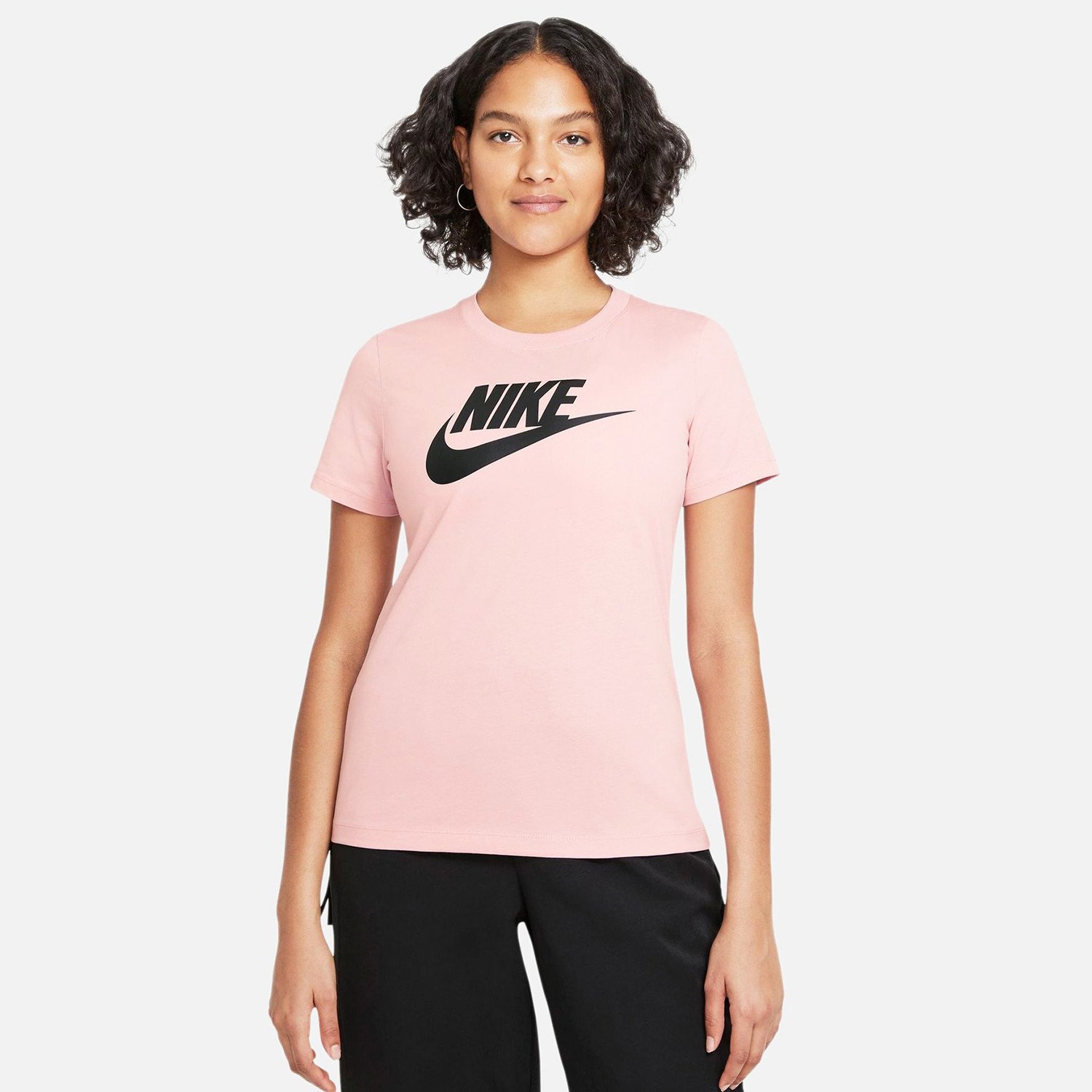 Άνεση, Αθλητικό Στυλ Γυναικείο t-shirt κατασκευασμένο από μαλακό, βαμβακερό ύφασμα με την υπογραφή της Nike να πρωταγωνιστεί στο μπροστινό μέρος. Το Nike Sportswear Essential t-shirt είναι ιδανικό τόσο για το gym όσο και για ένα χαλαρό αθλητικό look. Χαρίζει μια άψογη εφαρμογή καθώς και μια απαλή αίσθηση καθ’ όλη τη διάρκεια της ημέρας. Τα Χαρακτηριστικά του • Σύνθεση: 100% βαμβάκι • Κανονική εφαρμογή • Ριμπ στρογγυλή λαιμόκοψη Extra Πληροφορίες • Λογότυπο Nike στο στήθος • Πλύσιμο στο πλυντήριο • Χρώμα: Ροζ