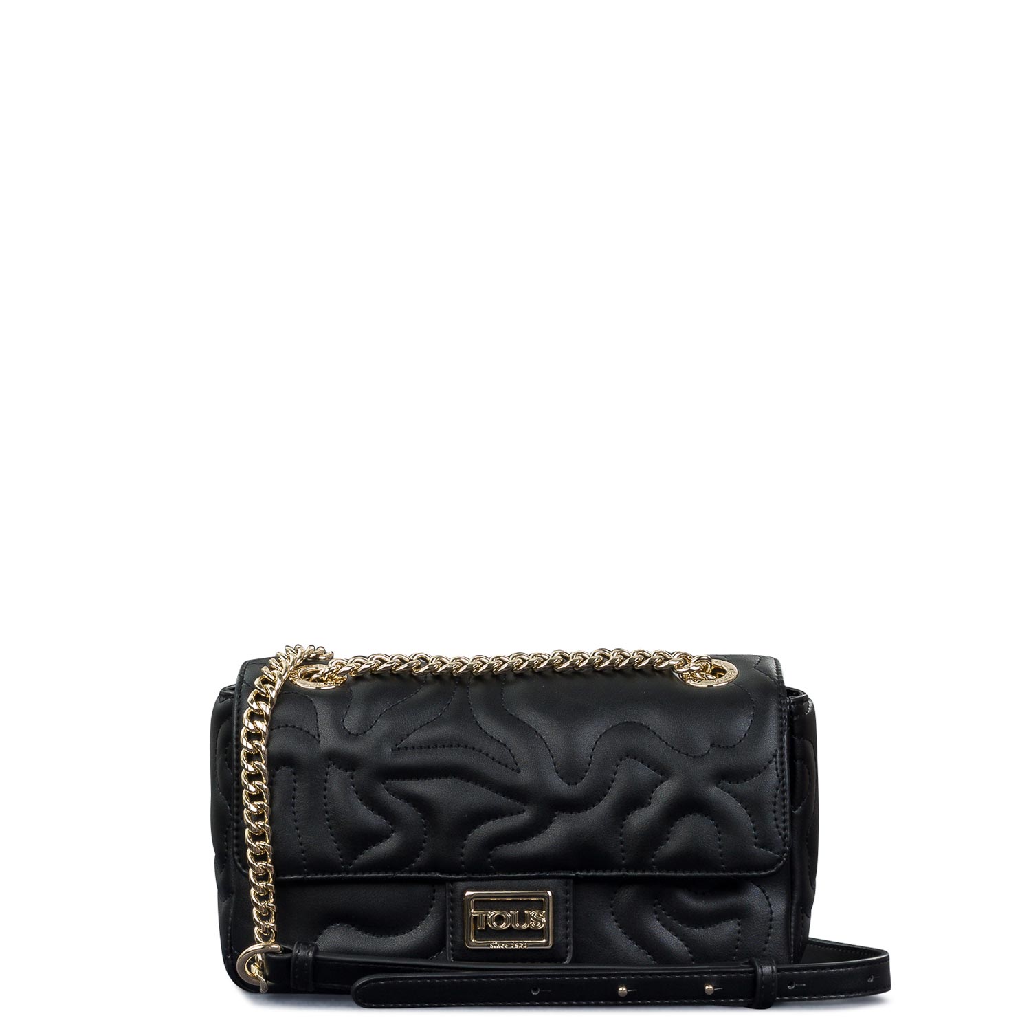 Small TOUS Kaos Dream collection crossbody bag with flap in the shape of a bear, in padded polyurethane with black leather-effect finish. Long chain-style adjustable crossbody strap. Magnetic button closure. One flat inner pocket. Measurements: 8 x 25 x 15 cm