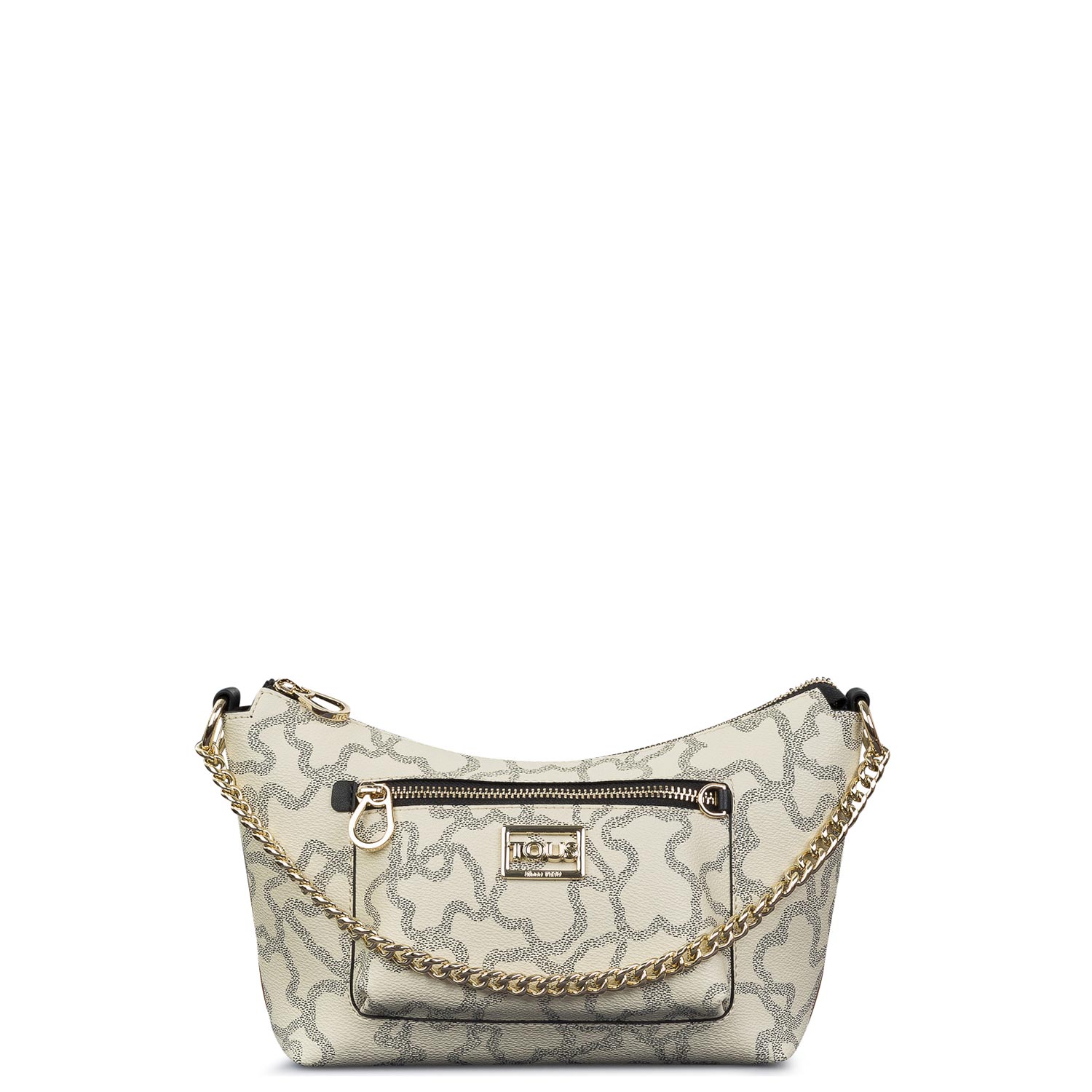 Medium TOUS baguette bag from the Kaos Icon collection in multi-black-colored leather-effect vinyl with bear print. Zipper closure. Decorative chain shoulder strap and adjustable and detachable crossbody strap. One exterior zipper pocket and one flat interior pocket. Measurements: 10 x 31 x 18 cm.