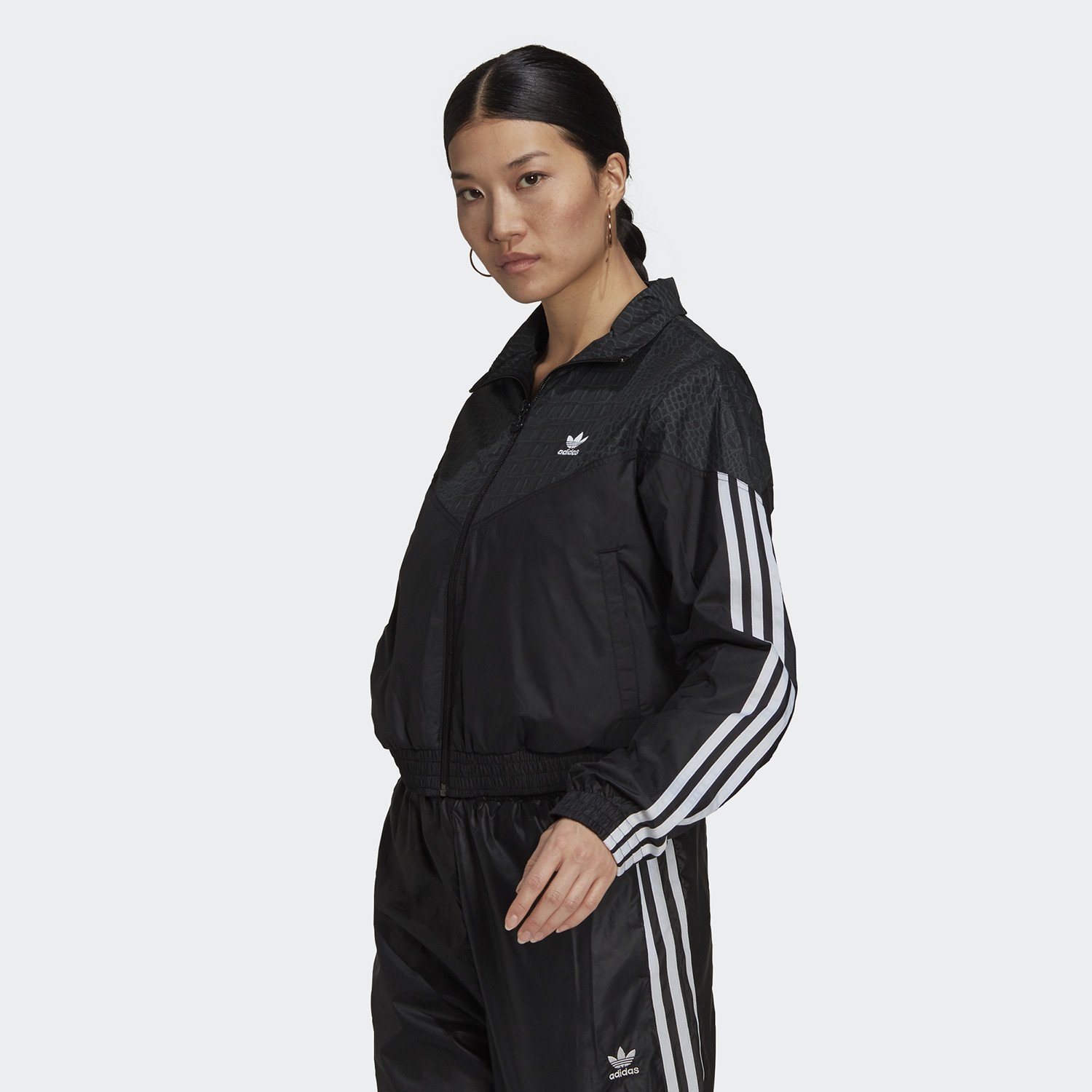 Ο Mix and match σχεδιασμός συνδυάζει τέλεια το animal print με το μονόχρωμο κλασσικό μαύρο.. Το αυθεντικό σχέδιο με τις τρεις χαρακτηριστικές ρίγες της adidas δίνει μια old-school διάθεση ενώ το crop στιλ της κολακεύει κάθε σωματότυπο. Πληροφορίες • Σύνθεση: 100% ανακυκλωμένος πολυεστέρας απλής ύφανσης • Χαλαρή εφαρμογή • Κλείσιμο με φερμουάρ και όρθιο γιακά • Πλαϊνές τσέπες • Ελαστικές μανσέτες και στρίφωμα • Primegreen Extra Λεπτομέρειες • Animal print σχέδιο στο πάνω μέρος • Χρώμα: Μαύρο Φροντίδα • Απαγορεύεται το στεγνωτήριο • Απαγορεύεται το σιδέρωμα • Πλύσιμο στο πρόγραμμα για ευαίσθητα