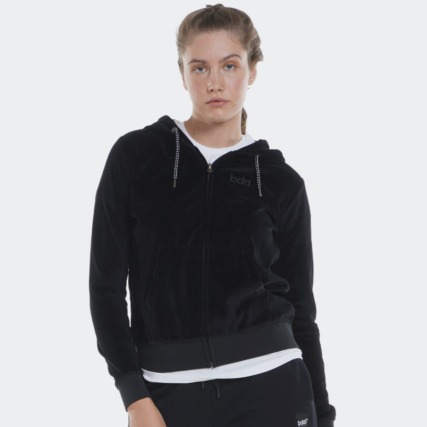Τι πιο μαλακό κα άνετο από μια βελουτέ ζακέτα? Η συγκεκριμένη από την BodyActionθα γίνει η αγαπημένη σου καθημερινή επιλογή για κομψές αλλά αθλητικές εμφανίσεις. Διαθέτει κουκούλα και τσέπες για τα χεριά για να αισθάνεσαι ακόμα πιο χαλαρή όταν έχει δροσιά! Πληροφορίες • Σύνθεση: 82% βαμβάκι / 18% πολυεστέρας • Κανονική εφαρμογή • Κουκούλα με κορδόνι προσαρμογής • Ριμπ τελείωμα και μανσέτες • Τσέπες για τα χέρια Extra Λεπτομέρειες • Βελουτέ • Χρώμα: Μαύρο
