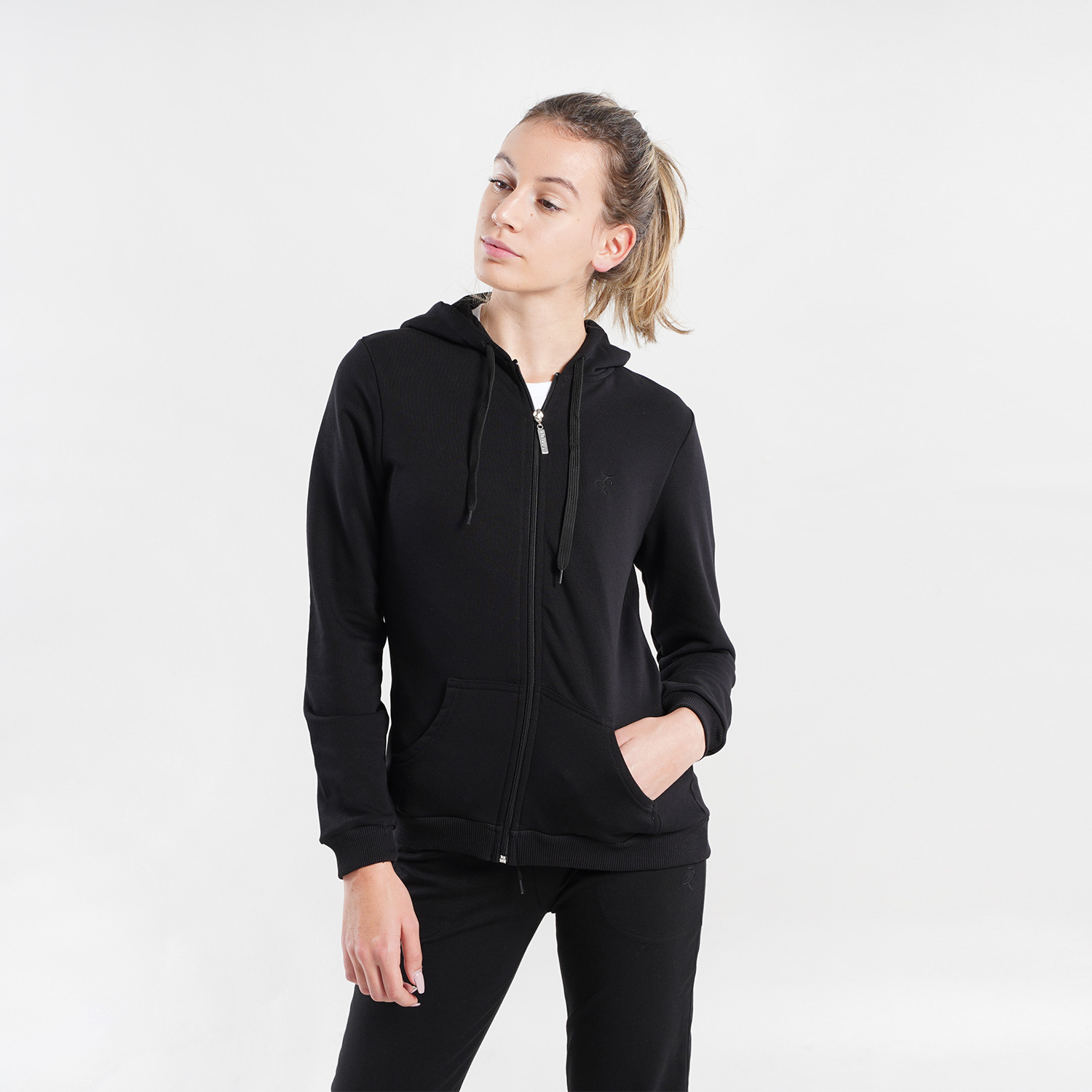 Για το γυμναστήριο ή εκείνες τις ημέρες που θέλεις απόλυτη άνεση και ένα comfy look, αυτή η ζακέτα είναι ιδανική! Χαρίζει μοναδική άνεση, ζεστασιά και σου επιτρέπει να έχεις απόλυτη ελευθερία κυήσεων. Διαθέτει κουκούλα για να σε προστατεύει από το κρύο αλλά και τσέπες για τα χέρια σου. Πληροφορίες • Σύνθεση: 80% βαμβάκι / 20% πολυεστέρας • Κανονική εφαρμογή • Κλείσιμο με φερμουάρ • Ριμπ μανσέτες • Κουκούλα στο πίσω μέρος με ρυθμιζόμενο κορδόνι Extra Λεπτομέρειες • Το μοντέλο είναι 175 cm και φοράει XS • Χρώμα: Μαύρο