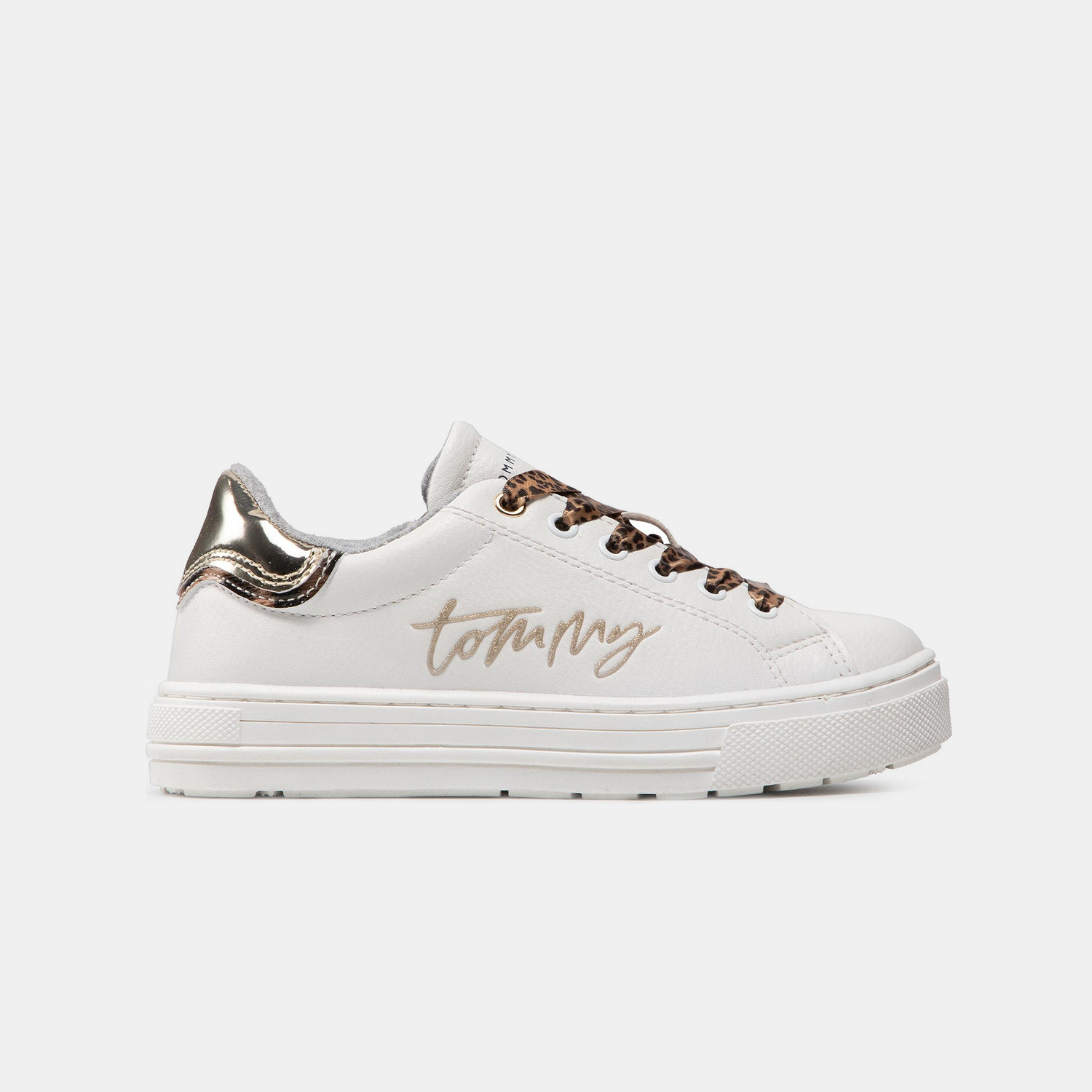 Τα παιδικά παπούτσια της Tommy είναι μια επιλογή που θα λατρέψουν οι μικρές μας φίλες. Το χρώμα τους συνδυάζεται τέλεια με τις γυαλιστερές και animal print λεπτομέρειες δημιουργώντας μοναδικές εμφανίσεις που ταιριάζουν με οτιδήποτε. Το δερμάτινο άνω μέρος τους παραμένει ανθεκτικό ακόμα και μετά από πολύ παιχνίδι και διασκέδαση Πληροφορίες • Δερμάτινο άνω μέρος • Κανονική εφαρμογή • Ελαφρός ψηλότερη σόλα • Κλείσιμο με φερμουάρ στο πλάι και κορδόνια Extra Λεπτομέρειες • Μεταλλικές λεπτομέρειες • Animal print κορδόνια • Χρώμα: Λευκό