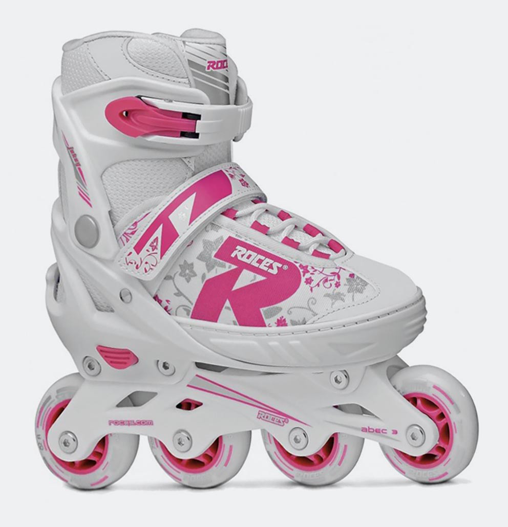 Δράση Με Ασφάλεια Πλήρες σετ πατίνια Athlopaidia, εσωτερικά αυξομειούμενα με ειδικό κουμπί για εύκολη και γρήγορη προσαρμογή μεγέθους με 2 κουμπώματα για σταθερότητα και ασφάλεια. Είναι ιδανικά για το περιβάλλον της πόλης και θα διατηρούν τα παιδιά διαρκώς ξεκούραστα και άνετα. Tα Χαρακτηριστικά τους • Μπότα: Aνατομικό • Κέλυφος: Από πολυπροπυλένιο • Δέσιμο: Κορδόνια, κούμπωμα velcro, κούμπωμα ασφαλείας • Άξονες: Από πολυπροπυλένιο • Ροδάκια:70χιλ. για μεγέθη 30-33 & 34-37 / 72χιλ. για μέγεθος 38-41 • Ρουλεμάν: ABEC 3 • Χρώμα: Ροζ / Λευκό