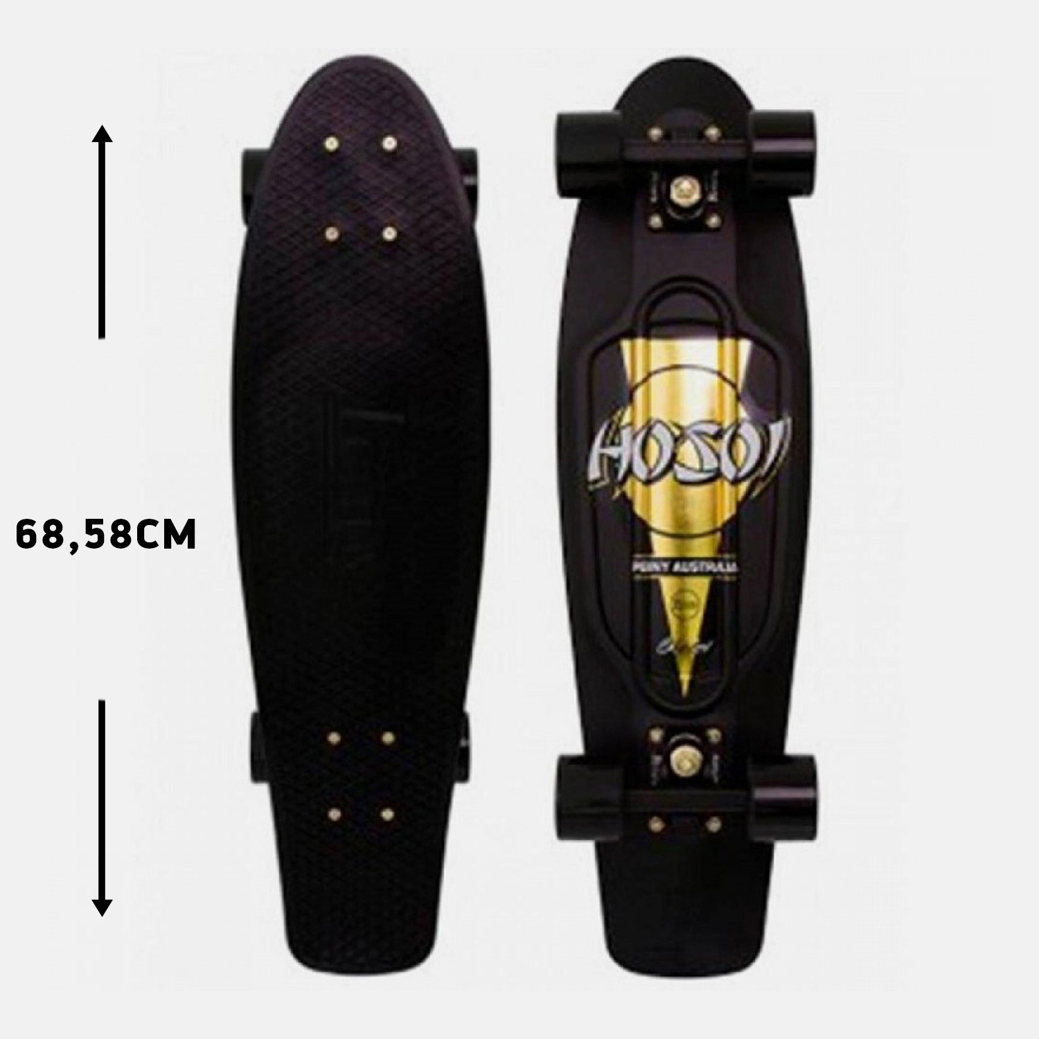 Ένα Άψογο Skateboard Σε Περιορισμένη ‘Εκδοση Η Hosoi ανέπτυξε ένα νέα μαύρο και χρυσό skateboard νικελίου για να τιμήσει τα τρία χρόνια παρουσίας του Christian Hosoi στον χώρο του επαγγελματικού skate. Τα τελευταία 3 χρόνια ο Hosoi συνεργάζεται με την Penny για να φέρει περισσότερους ανθρώπους κοντά στο skating. Πάρτε στα χέρια σας (ή στα πόδια σας) αυτή τη μοναδική σανίδα! Τα Χαρακτηριστικά της• Σανιδα: πλαστική νικελίου μήκους 27 ιντσών• Κλασική γκοφρέ αντιολισθητική επίστρωση• Ρουλεμάν: ανοξείδωτο ατσάλι Abec 7• Βίδες υψηλής τάσης• Άξονες: αλουμίνιο 4 “• Τροχοί: 59mm / 83Α για ομαλή πορεία Extra Πληροφορίες• Χρωμα μαυρο