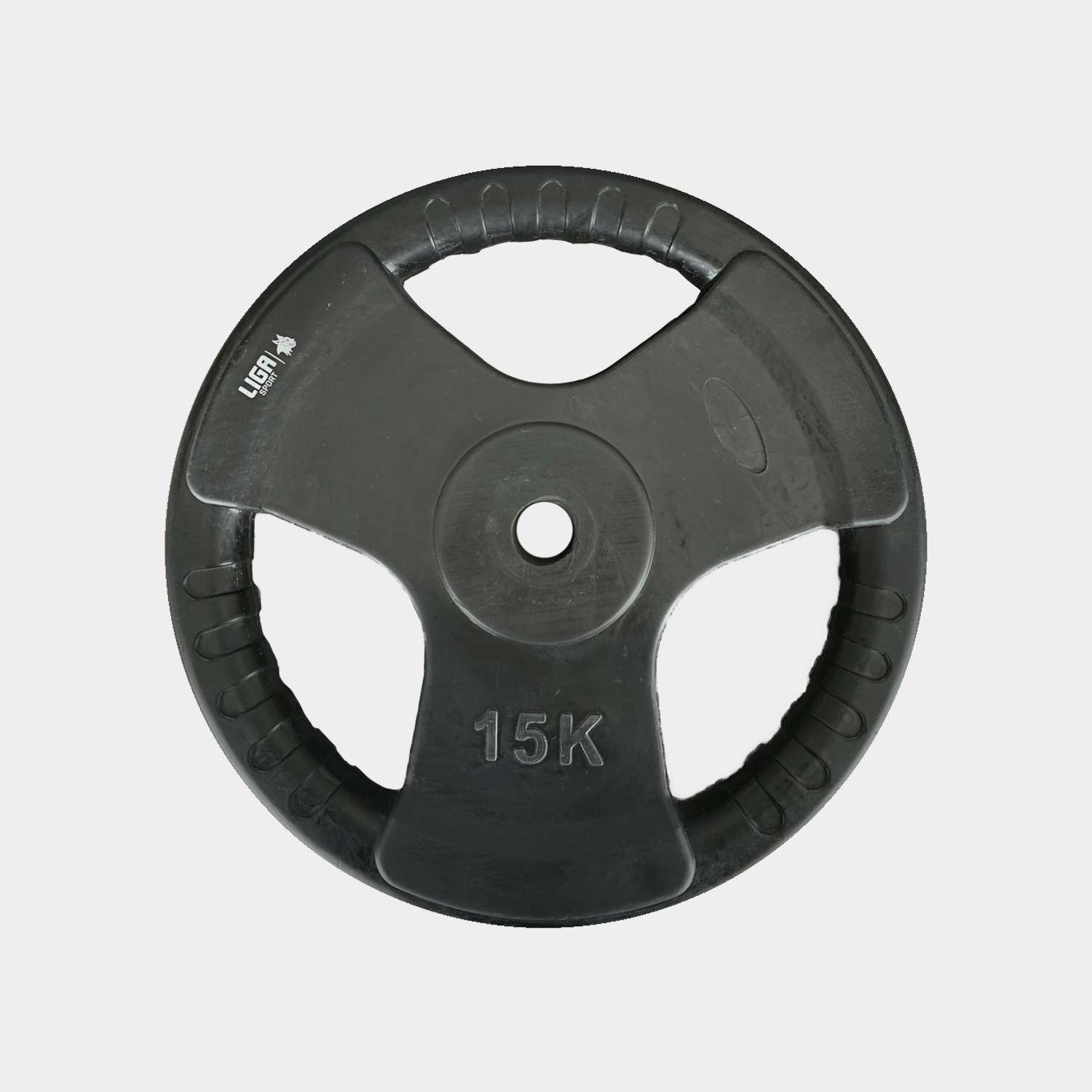 Αυτός ο δίσκος γυναστικής θα σε βοηθήσει να εκτελλέσεις αρκετές ασκήσεις στην προπόνησή σου. Είναι κατασκευασμένος απο λάστιχο και διαθέτει τριά χερούλια.Τα Χαρακτηριστικά Του • Βάρος: 15 kg • Τρία χερούλια • Κατασκευασμένο από λάστιχο • Κατάλληλο για μπάρα Body-Pump • Χρώμα: Μαύρο